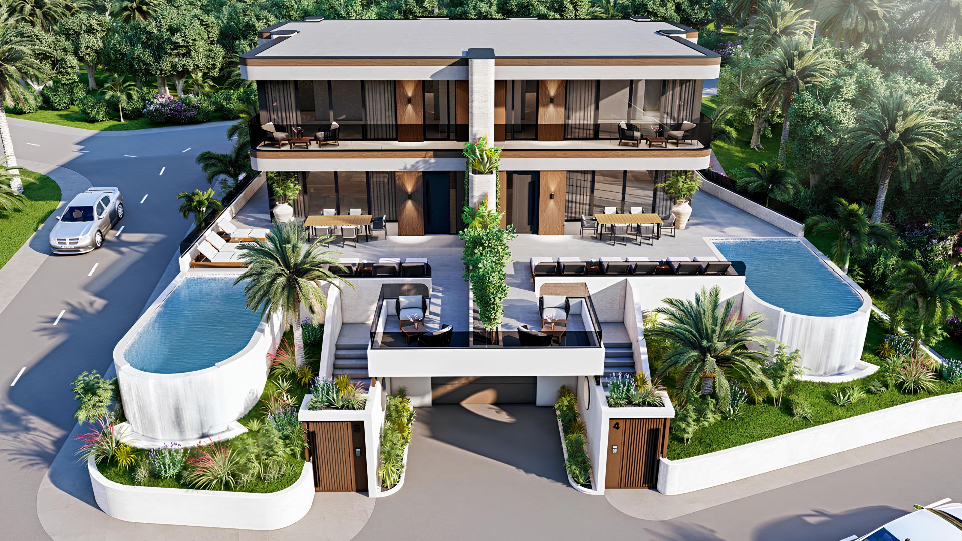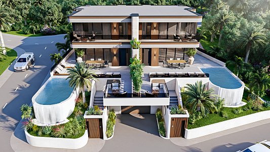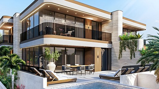 Exteriér vily je stejně impozantní jako její interiér. Na terase najdete soukromý bazén, který je ideálním místem pro relaxaci a osvěžení během horkých letních dnů. Zahrada je pečlivě udržovaná a nabízí klidné útočiště, kde si můžete vychutnat sluneční paprsky nebo si dopřát večerní grilování s rodinou a přáteli.